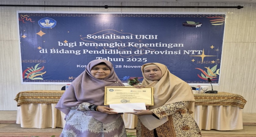 MTsN Kota Kupang (Kemenag) — MTs Negeri Kota Kupang kembali mencatatkan prestasi di tingkat Provinsi Nusa Tenggara Timur. Pada kegiatan Uji Kemahiran Berbahasa Indonesia (UKBI) yang diselenggarakan Balai Bahasa Provinsi NTT di Hotel Kristal, Jumat (28/11/2025), madrasah tersebut meraih Juara 3 Nominasi Kategori Pengimbasan UKBI Tahun 2025, yang diterima oleh dua guru perwakilan madrasah.
