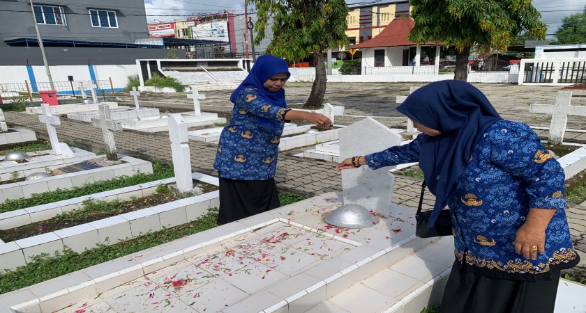 Peringati HAB Kemenag, Kepala MTsN Kota Kupang dan KTU Lakukan Ziarah di TMP Dharmaloka